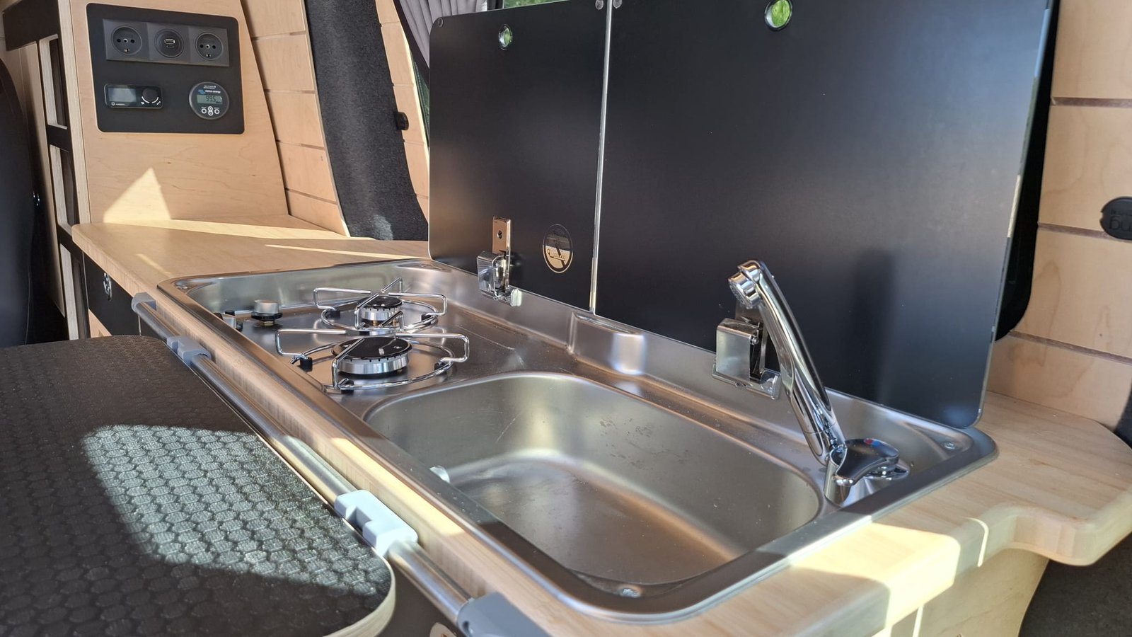 • Combiné évier + gaz double feux avec coffre de gaz étanche