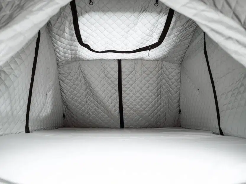 Reliez votre kit thermique à votre TentBox pour créer une extension confortable et bien isolée. Ses fenêtres intégrées vous permettent de garder une vue magnifique, tout en assurant une ventilation optimale de votre tente de toit. Parfait pour le camping en hiver et pour ceux qui aiment dormir bien au chaud.